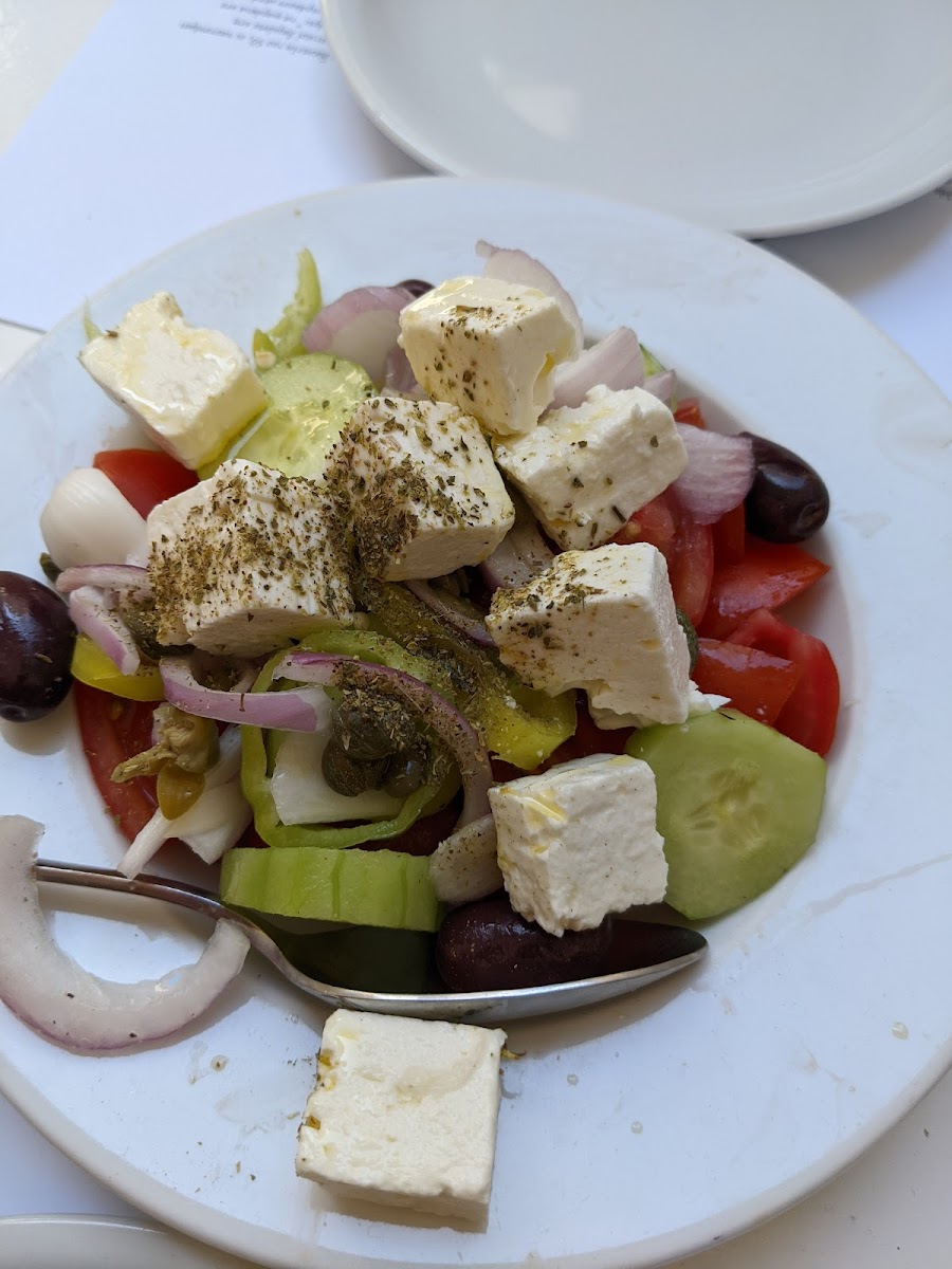 Good seafood with good staff. The fish quality is not top notch but the taste is good enough. The greek salad was amazing and the bread super tasty. I recommend the small shrimps. The staff is really nice and attentive. The atmosphere is completely touristic don't expect a local place. But it's comfortable.