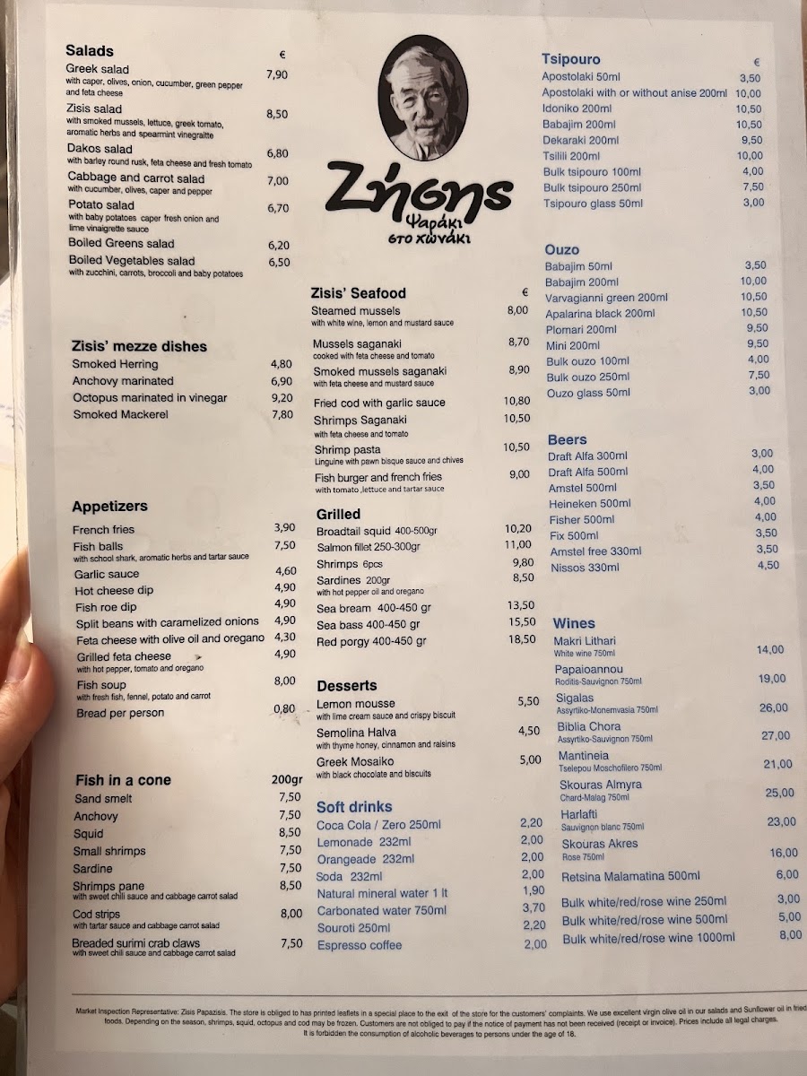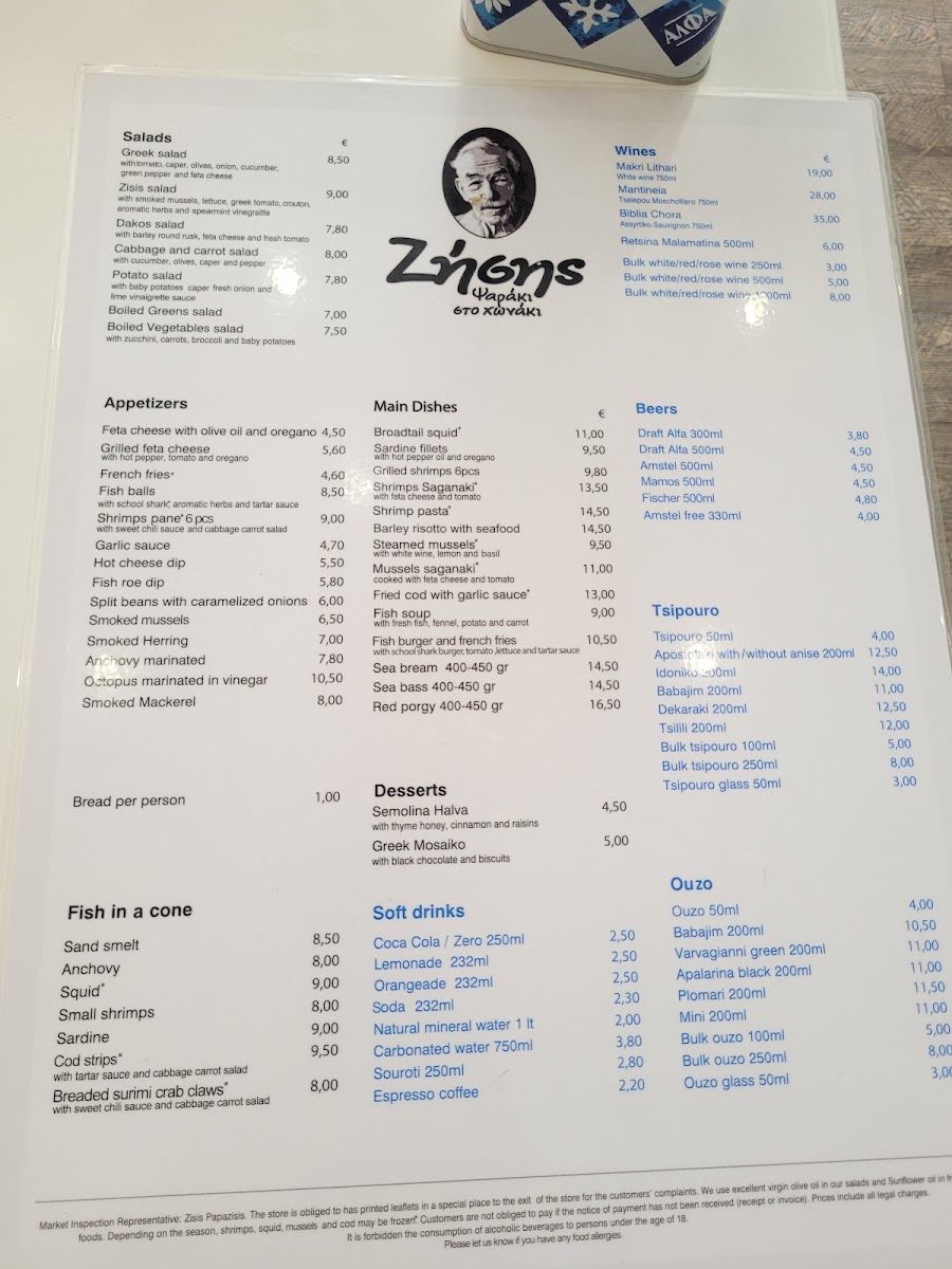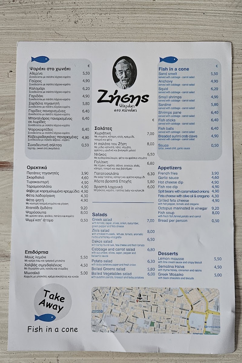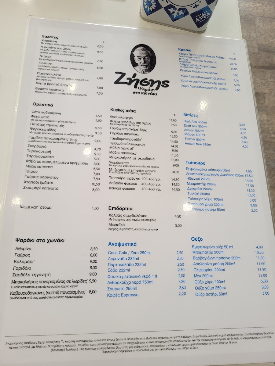 Popular items like fried calamari, grilled squid, and the playful cones filled with various fried seafood are typical choices that fit well with the laidback atmosphere. Alongside these, fresh salads such as the Zisis Salad provide a crisp, refreshing balance. Steamed mussels and fish balls add variety without overcomplicating your meal.